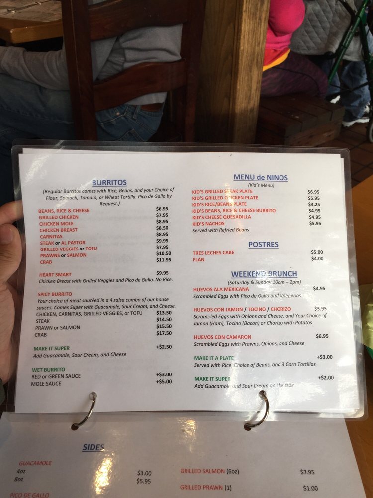 Regular burritos comes with rice, beans, and your choice of flour, spinach, tomato, or wheat tortilla (pico de gallo by request).
